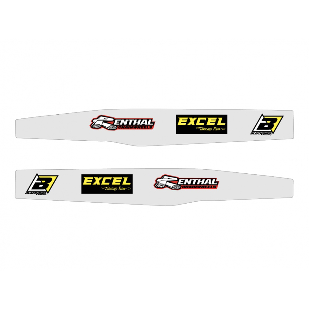 Gli adesivi vengono prodotti in Italia con materiali di alta qualità. Il film utilizzato è in crystall, un materiale trasparente e molto resistente che protegge il forcellone da graffi, urti e abrasioni. Il crystall è accoppiato a un collante tenace, specificamente studiato per garantire una perfetta aderenza su superfici soggette a vibrazioni e sporco, come quelle delle moto da off-road. La stampa serigrafica assicura una resa visiva eccellente grazie all’uso di inchiostri duraturi e brillanti, che non sbiadiscono con il tempo né con l’esposizione al sole. Il risultato è un adesivo robusto, resistente e sempre esteticamente impeccabile, anche dopo un utilizzo prolungato e intenso.