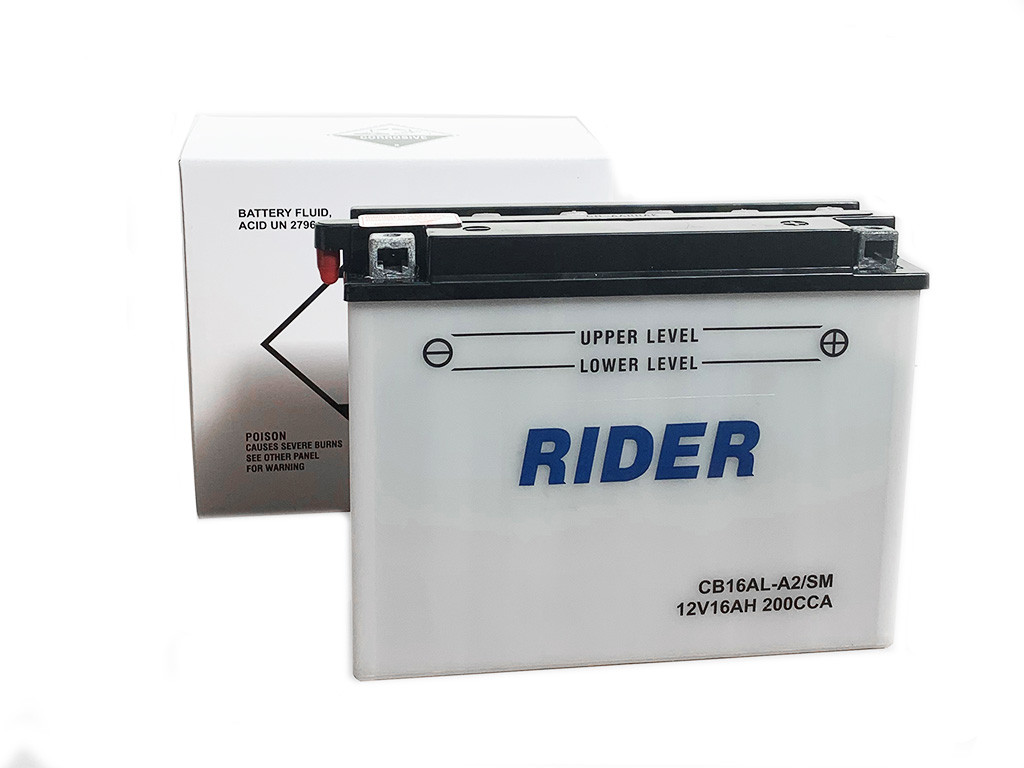 Batteria Rider CB16ALA2SM serie Convenzionale, con acido a corredo, per DUCATI 916 SP 916cc 1994-1996 (Yuasa code YB16AL-A2)Le Batterie Rider Serie Convenzionali sono progettate per sfruttare la combinazione del piombo e dell’ acido e ottenere sempre ottime performance in avviamento e garantire un alto amperaggio. Sono dotate di valvola di scarico per consentire un normale deflusso dell’elettrolita in condizioni particolarmente gravose. La scatola trasparente rende semplice il monitoraggio dei livelli degli elettroliti per consentire un’ agevole manutenzione. Al fine di avere le massime performance della batteria al momento dell’installazione sul veicolo, nella confezione è presente la batteria e il contenitore con l’acido necessario al suo funzionamento. La vita della batteria infatti ha inizio dal momento in cui viene inserito l’acido all’interno della stessa.