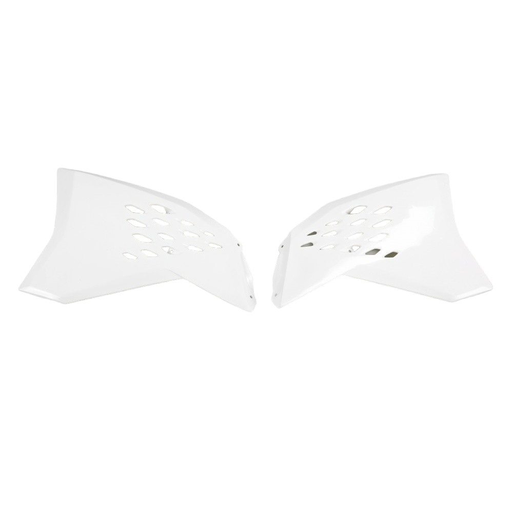 Questi convogliatori bianchi per KTM 125 SX hanno una doppia funzione: migliorano l’aspetto della moto e, allo stesso tempo, guidano correttamente il flusso d’aria verso i radiatori, aiutando a mantenere la giusta temperatura del motore. Se sei interessato a questo prodotto e vuoi conoscere la compatibilità anno moto fai riferimento al titolo del prodotto.