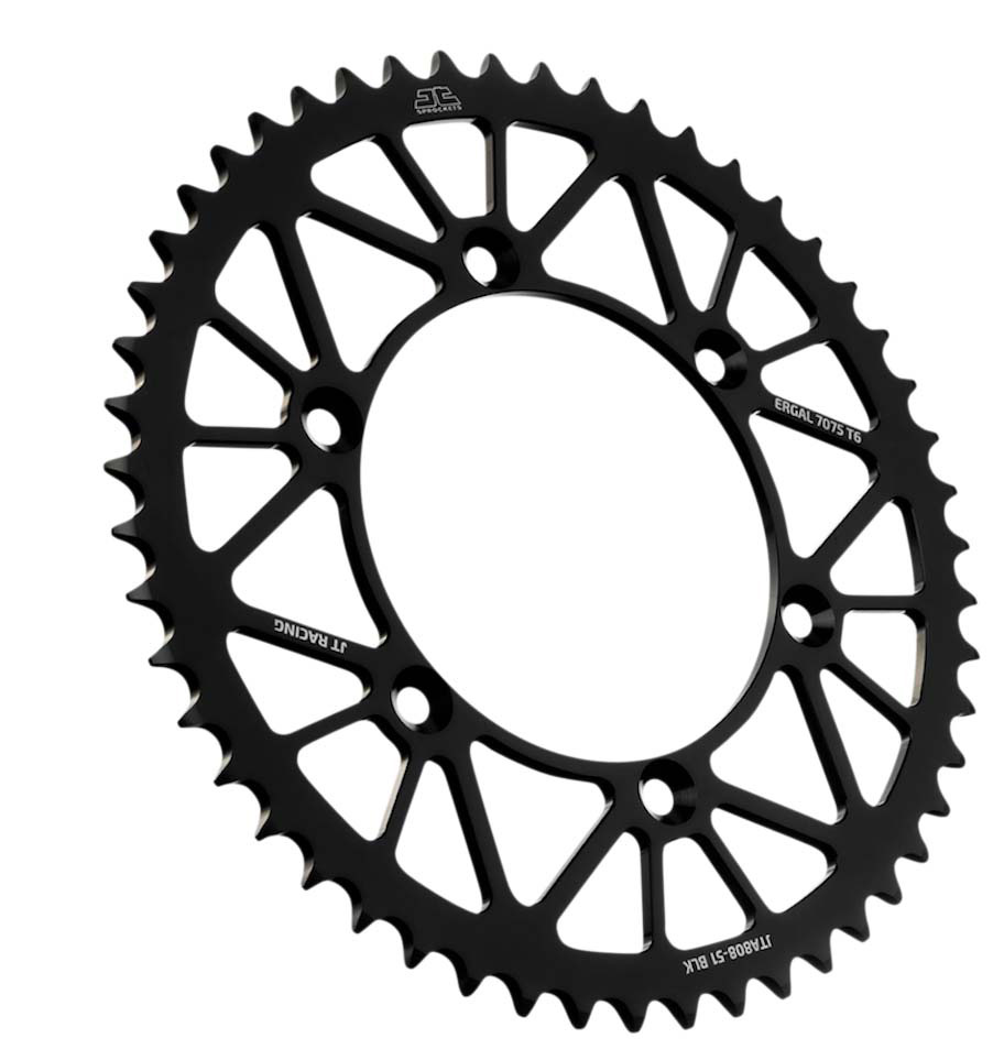 Corona JTA808.51BLK in ergal per Suzuki RM 125 51 denti nera. Per compatibilità anno attenersi al titolo del prodotto. È realizzata da JT Sprockets, una delle aziende più conosciute nel settore dei ricambi per moto. Questo prodotto è pensato per garantire affidabilità, durata e prestazioni ottimali. La sua funzione principale è trasferire la potenza dal pignone alla ruota posteriore, tramite la catena. Per questo motivo è importante scegliere una corona di qualità.