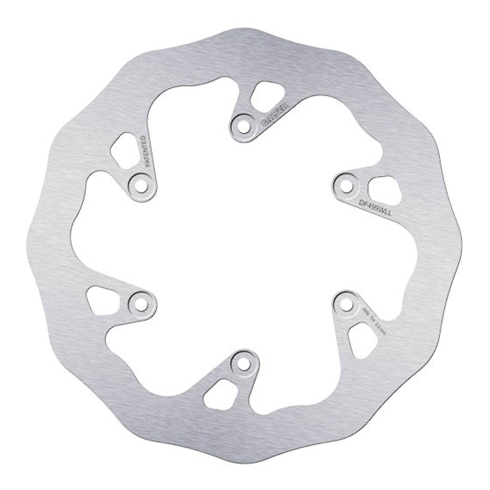 Il disco è di tipo pieno, cioè senza fori, ed è destinato alla ruota posteriore. La forma "Wave" lo rende molto efficace nel dissipare il calore durante la frenata. Questo aiuta a evitare il surriscaldamento, migliorando la durata del disco e la sicurezza in frenata. È realizzato in acciaio inossidabile ad alta resistenza, che assicura una lunga vita utile e resiste bene all’usura anche in condizioni difficili.