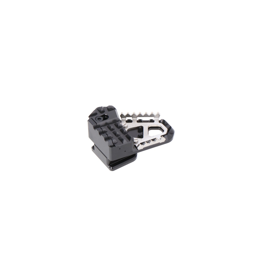 SW-MOTECH realizza le estensioni in lega di alluminio fresata e ad alta resistenza con superficie anodizzata nera e piastra base in acciaio inossidabile. Per un adattamento ergonomico ottimale, è possibile regolare la base del pedale freno su due livelli, 22 o 27 millimetri.