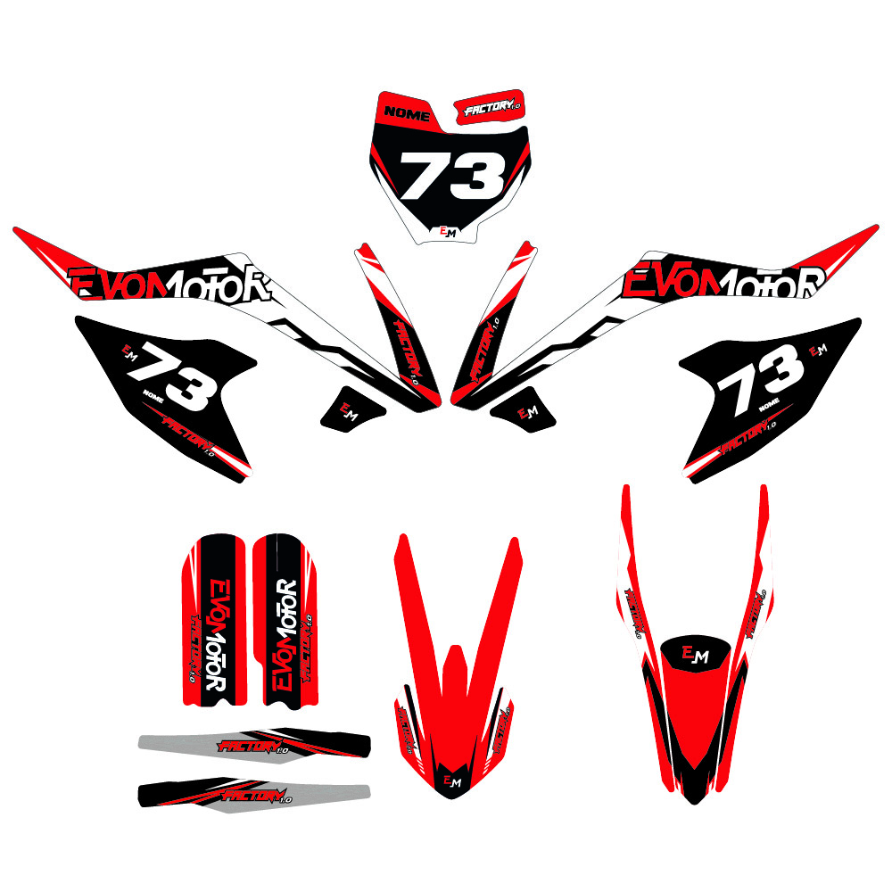 Progettato specificamente per pit bike replica ktm 65 in versione Evomotor Rosse, il kit si adatta perfettamente alle plastiche originali, senza bisogno di modifiche. Ogni adesivo segue fedelmente le linee della moto, garantendo una copertura precisa e un’applicazione senza pieghe o bolle. Non si tratta di una grafica universale, ma di un prodotto pensato e sviluppato esclusivamente per questo modello di moto.