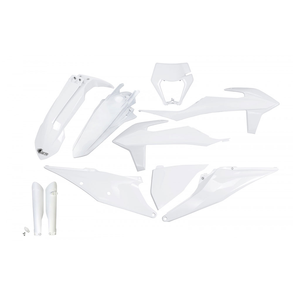 kit plastiche UFO Plast completi di parasteli per KTM 250 EXC-F di colore bianco