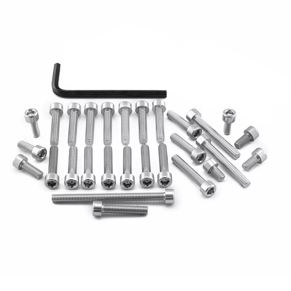 Il kit comprende tutte le viti necessarie per il motore della tua moto, assicurando una perfetta compatibilità. Ogni vite è trattata per resistere alla corrosione e all'usura, garantendo così una lunga durata nel tempo.