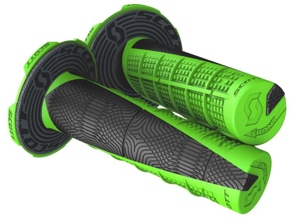 Manopole Scott Deuce bicolore verde nero per enduro.