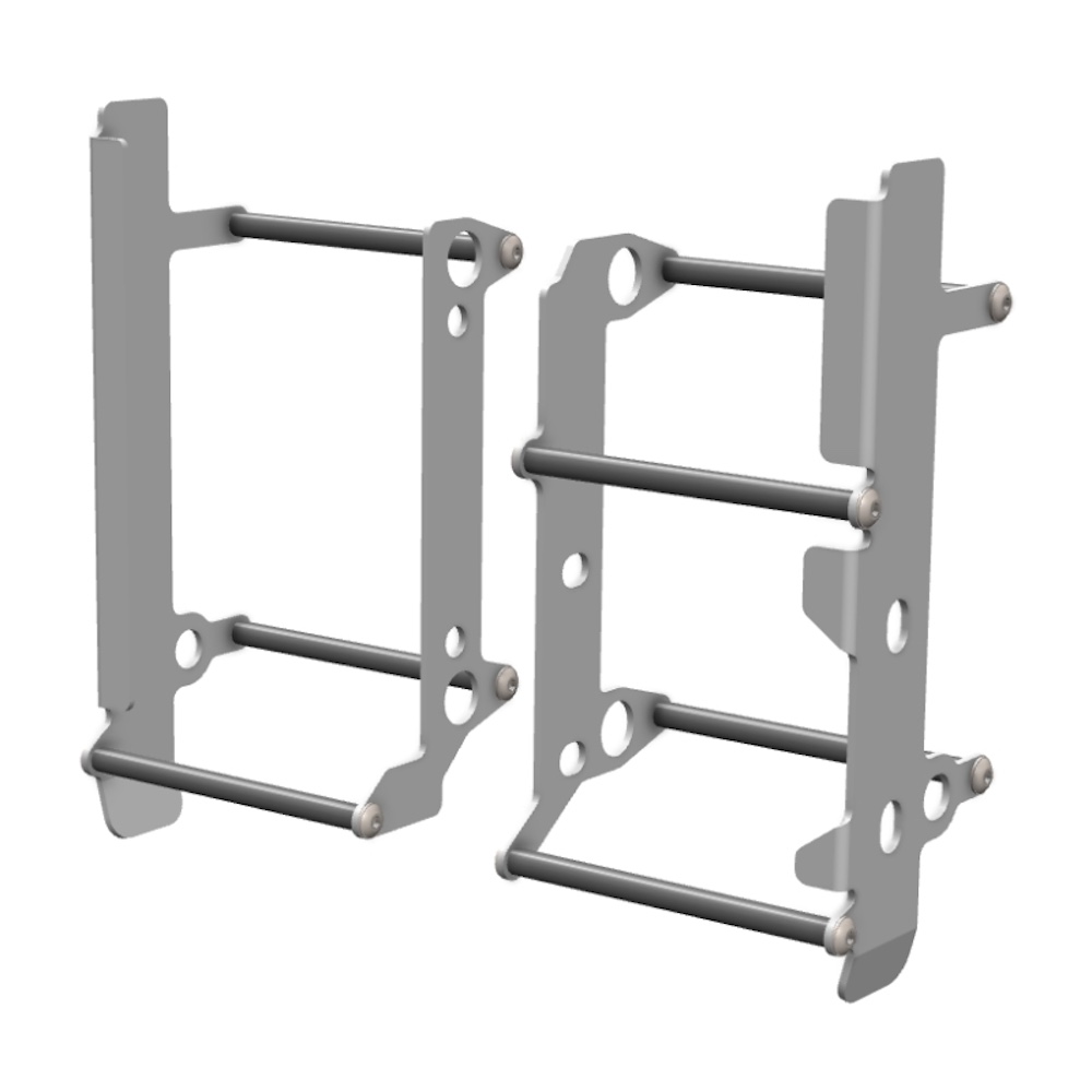 I proteggi radiatori CrossPro sono realizzati con leghe di alluminio di altissima qualità, scelte per garantire durata e leggerezza. Lo spessore del materiale è di 3 mm, un valore che assicura rigidità e resistenza meccanica superiore rispetto ad altre soluzioni presenti sul mercato. I collegamenti sono rinforzati da tubi pieni, che irrigidiscono la struttura e la rendono stabile anche sotto forti sollecitazioni. Un altro vantaggio importante è la disposizione dei punti di fissaggio: non sono a contatto diretto con il radiatore, caratteristica che aumenta la capacità di assorbire urti e impatti. Inoltre, queste protezioni permettono di mantenere la protezione plastica di serie già montata sulla moto. Disponibili esclusivamente in colorazione alluminio con finitura sabbiata, si integrano perfettamente con l’estetica del mezzo e mantengono un aspetto sobrio e resistente nel tempo.