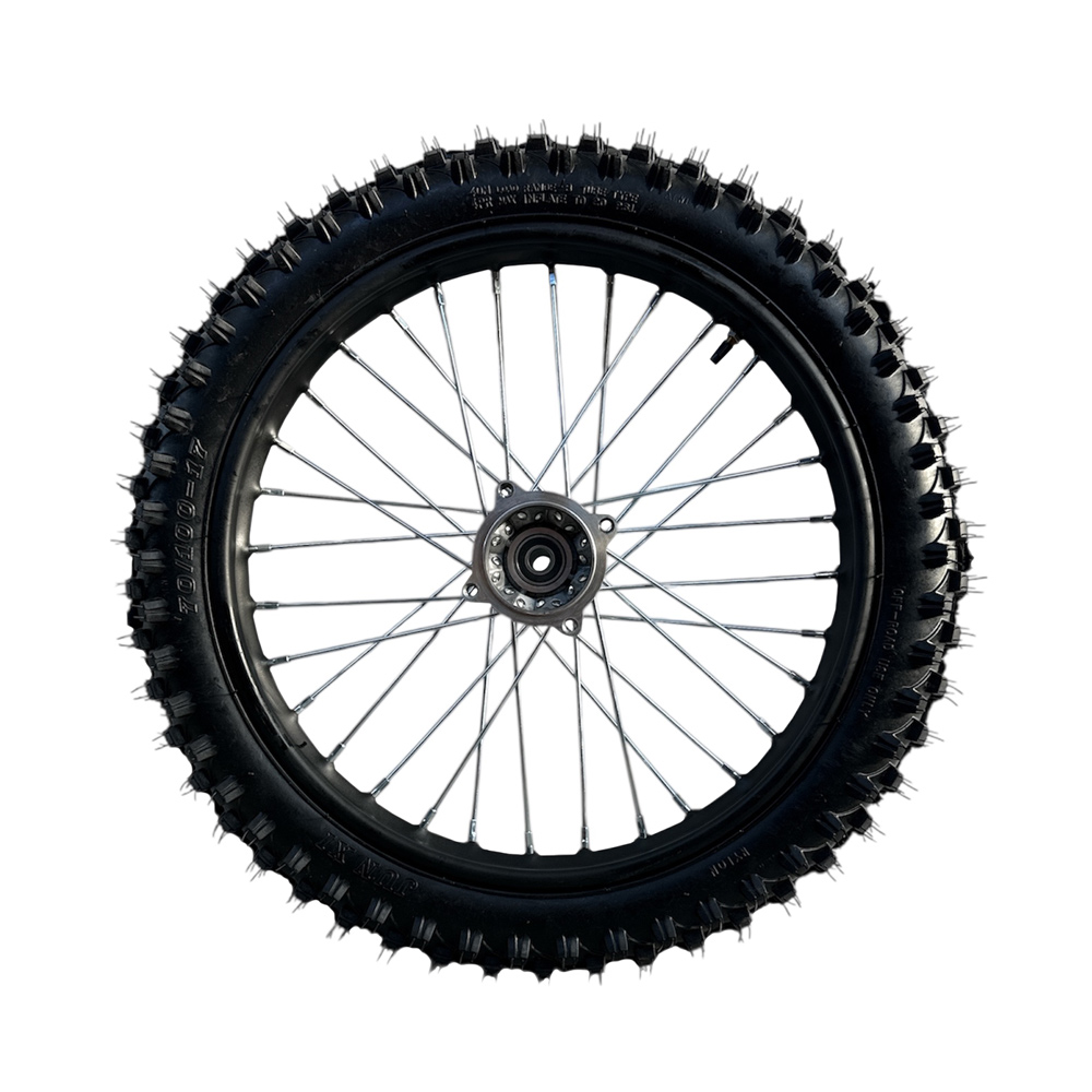 Ruota anteriore completa 17" pit bike. Cerchio + Gomma 70/100-17" + camera aria.