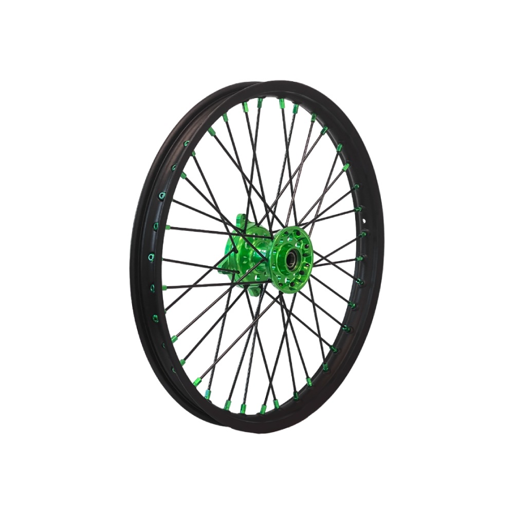 La ruota anteriore di colore verde è realizzata per essere perfettamente compatibile con Kawasaki KX 450 F. Per compatibilità anno moto far riferimento al titolo del prodotto. Si tratta di una ruota anteriore, con misure standard 21x1.60, ideali per l’utilizzo nel fuoristrada. È una ruota sostitutiva completa, pronta per l’installazione senza bisogno di modifiche. Se possiedi una moto e hai bisogno di una nuova ruota per sostituire quella originale, questo prodotto rappresenta una soluzione solida e di qualità. Perfetta per chi pratica motocross, enduro o semplicemente vuole mantenere la propria moto efficiente e sicura.