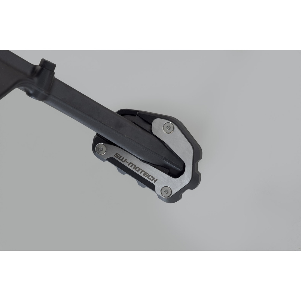 L'ampia superficie di appoggio della base maggiorata del cavalletto laterale offre un‘appoggio sicuro anche su terreni accidentati e poco compatti. Perfetta aderenza e maneggevolezza nella guida di tutti i giorni sono stati messi al centro in egual maniera durante lo sviluppo del prodotto. La parte superiore profilata della base maggiorata facilita l'apertura del cavalletto, anche con stivali pesanti.