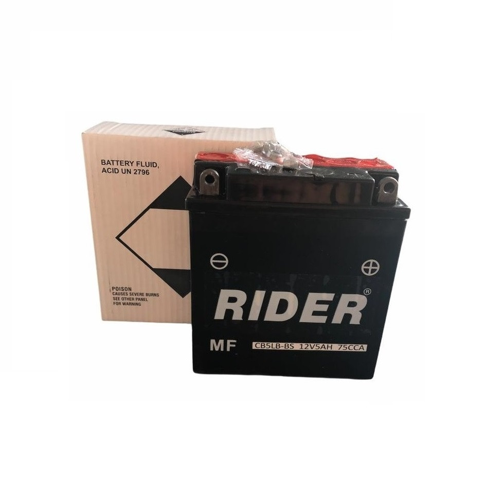 Batteria Rider CB5LBBS serie MF (senza manutenzione), tecnologia AGM, con acido a corredo, per BAOTIAN BT50QT-9 4T Scout (Ruote 10) 50cc 2006-2008 (Yuasa code YB5L-B)