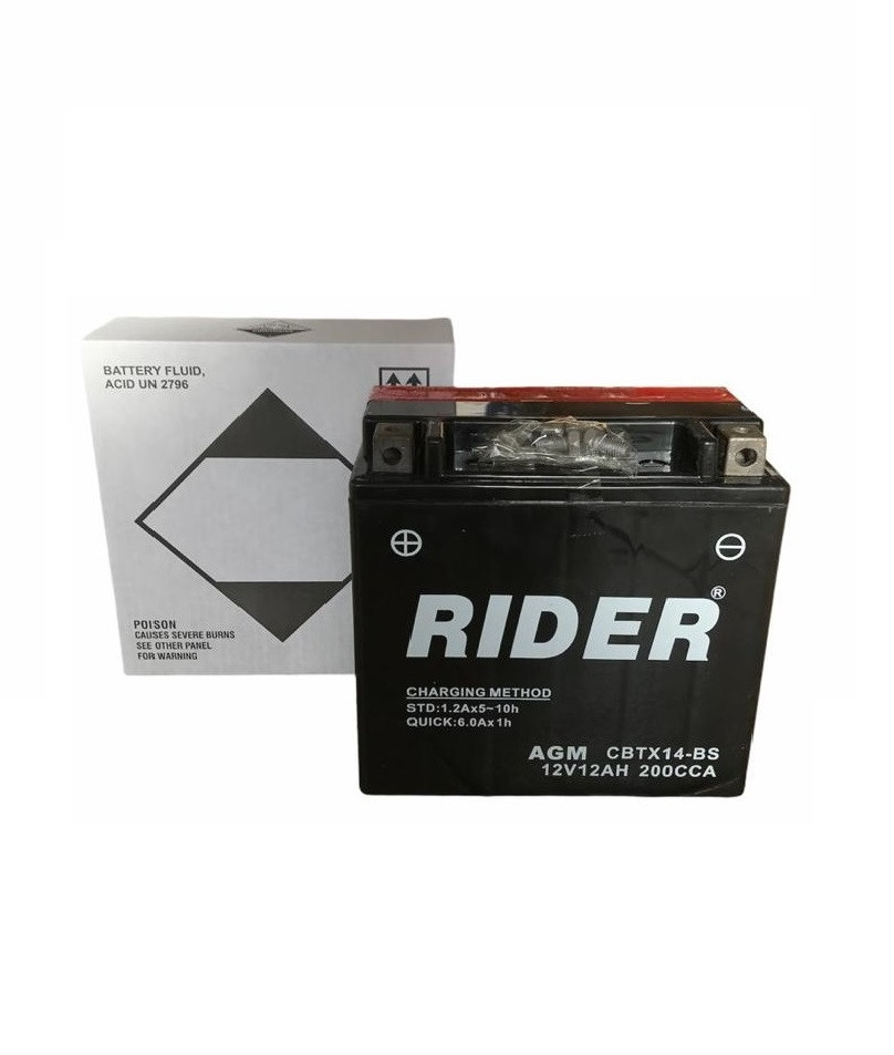 Batteria Rider CBTX14BS serie MF (senza manutenzione), tecnologia AGM, con acido a corredo, per PIAGGIO Carnaby (M60300) 250cc 2008-2010(Yuasa code YTX14-BS)