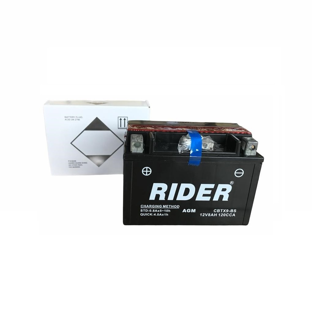 Batteria Rider CBTX9BS serie MF (senza manutenzione), tecnologia AGM, con acido a corredo, per SUZUKI XF Freewind 650cc 1997-2001 (Yuasa code YTX9-BS)