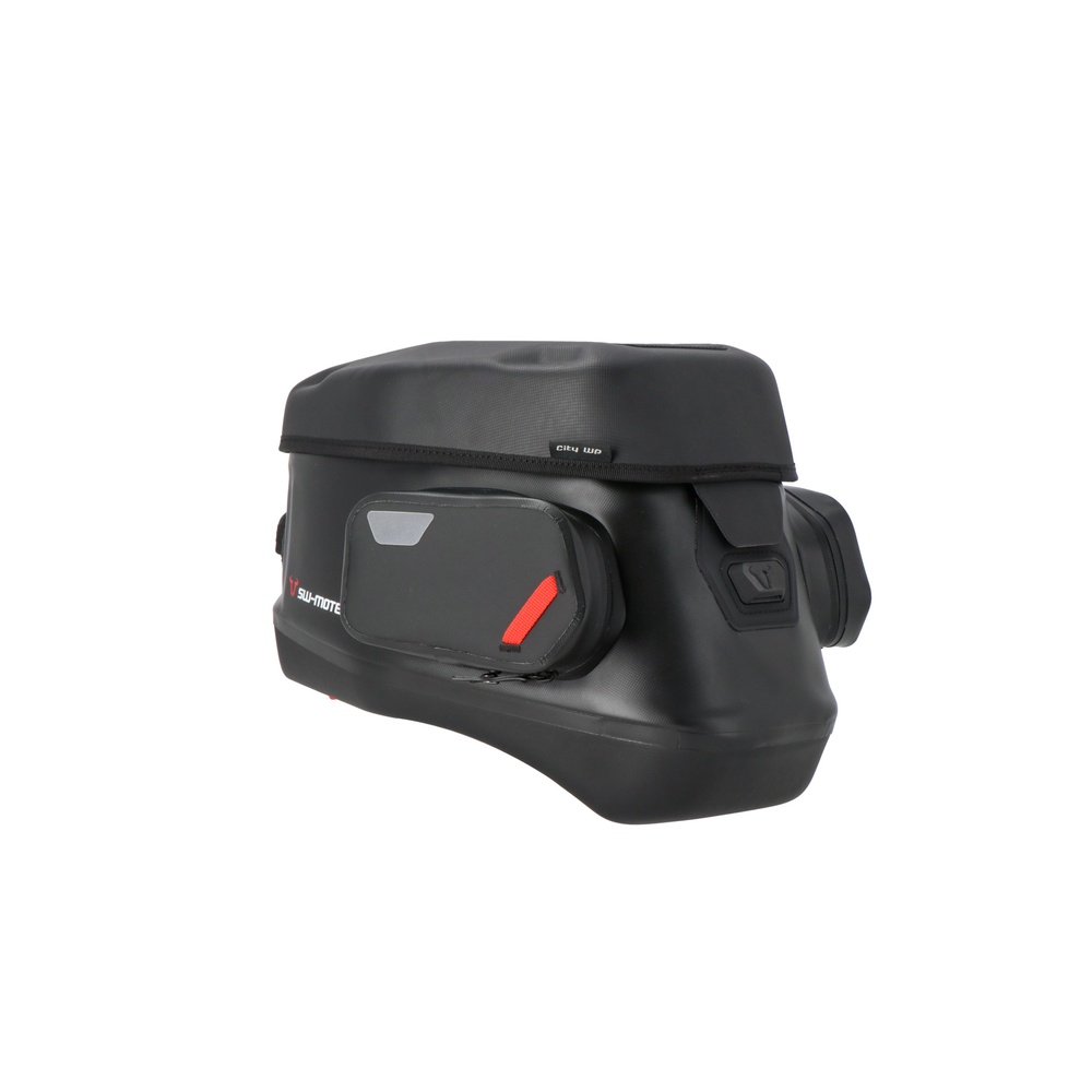 Il modello PRO City WP è il compagno perfetto per tutte le moto enduro da viaggio con serbatoio discendente. Grazie a un volume di 9 litri, offre un luogo sempre asciutto dove riporre tutti gli effetti personali, senza bisogno di ricorrere a una calotta antipioggia o tasca interna aggiuntiva. Il divisorio regolabile posto nello scomparto interno, dotato di un'ulteriore tasca a rete, garantisce una suddivisione intelligente dei bagagli.