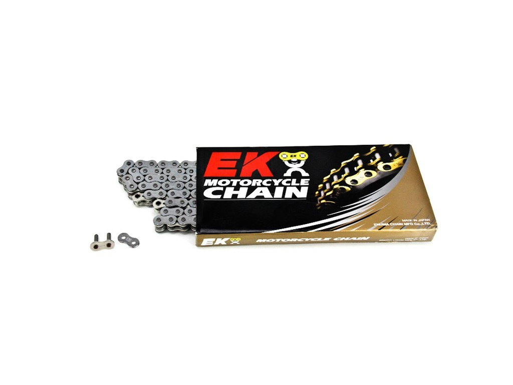 Catena trasmissione EK uso racing, consigliata per settore competizioni. Passo 428, lunghezza 132 maglie.