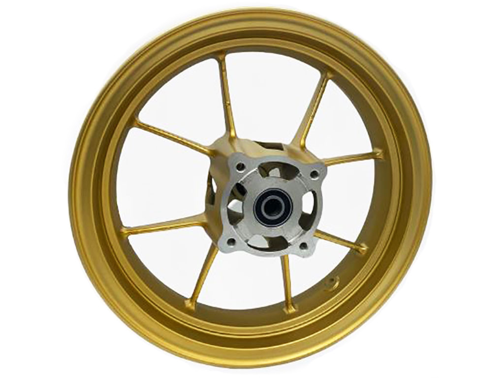 Cerchio anteriore VMC 4 fori 12 pollici canale 2.50 con cuscinetti da 15 mm. Colore oro. Larghezza mozzo 100 mm