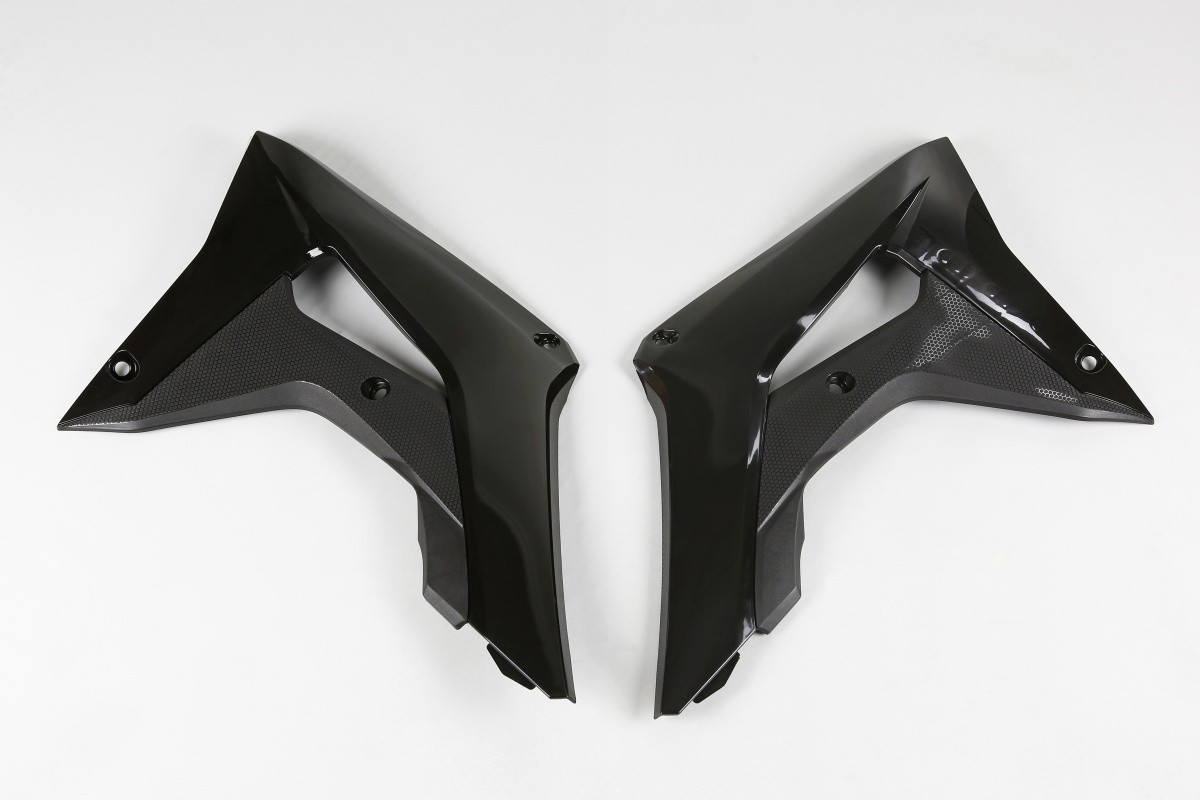 Questi convogliatori neri per Honda CRF 450 R hanno una doppia funzione: migliorano l’aspetto della moto e, allo stesso tempo, guidano correttamente il flusso d’aria verso i radiatori, aiutando a mantenere la giusta temperatura del motore. Se sei interessato a questo prodotto e vuoi conoscere la compatibilità anno moto fai riferimento al titolo del prodotto.