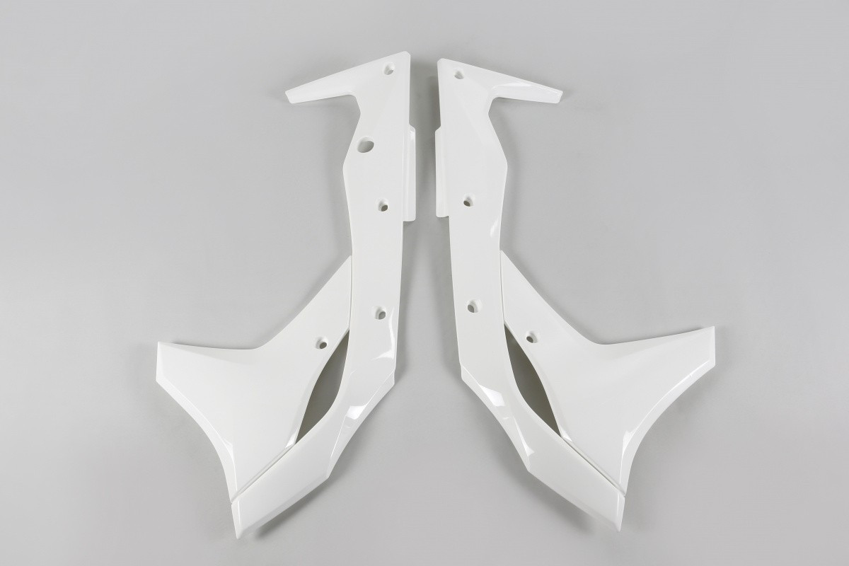 Questi convogliatori bianchi per Kawasaki KX 250 F hanno una doppia funzione: migliorano l’aspetto della moto e, allo stesso tempo, guidano correttamente il flusso d’aria verso i radiatori, aiutando a mantenere la giusta temperatura del motore. Se sei interessato a questo prodotto e vuoi conoscere la compatibilità anno moto fai riferimento al titolo del prodotto.