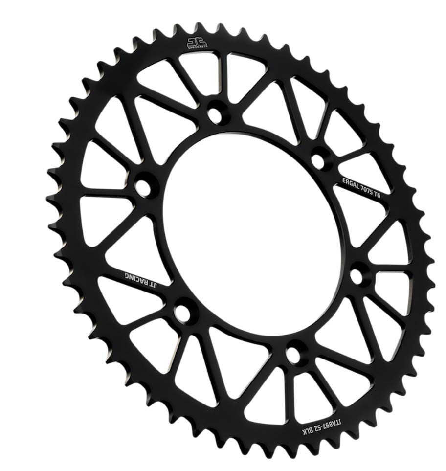 Corona JTA897.52BLK in ergal per KTM 125 EXC 52 denti nera. Per compatibilità anno attenersi al titolo del prodotto. È realizzata da JT Sprockets, una delle aziende più conosciute nel settore dei ricambi per moto. Questo prodotto è pensato per garantire affidabilità, durata e prestazioni ottimali. La sua funzione principale è trasferire la potenza dal pignone alla ruota posteriore, tramite la catena. Per questo motivo è importante scegliere una corona di qualità.