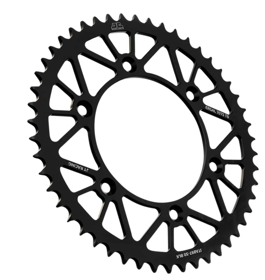 Corona JTA897.50BLK in ergal per KTM 350 SX-F 50 denti nera. Per compatibilità anno attenersi al titolo del prodotto. È realizzata da JT Sprockets, una delle aziende più conosciute nel settore dei ricambi per moto. Questo prodotto è pensato per garantire affidabilità, durata e prestazioni ottimali. La sua funzione principale è trasferire la potenza dal pignone alla ruota posteriore, tramite la catena. Per questo motivo è importante scegliere una corona di qualità.