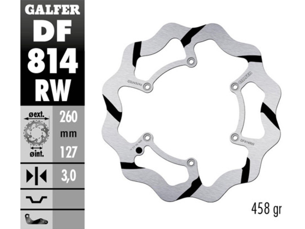 Il disco è della linea Race di Galfer, pensata per le competizioni. Ha un diametro standard e un profilo Wave, cioè ondulato. Questa forma aiuta a raffreddare il disco durante la frenata. Inoltre, fa uscire più velocemente fango, polvere e acqua, migliorando il grip. È costruito in acciaio inox ad alta resistenza, tagliato al laser. Questo garantisce precisione, leggerezza e lunga durata. La struttura è ventilata, per gestire meglio il calore e ridurre il rischio di perdita di potenza in frenata. Le finiture sono di alta qualità, come da tradizione Galfer.