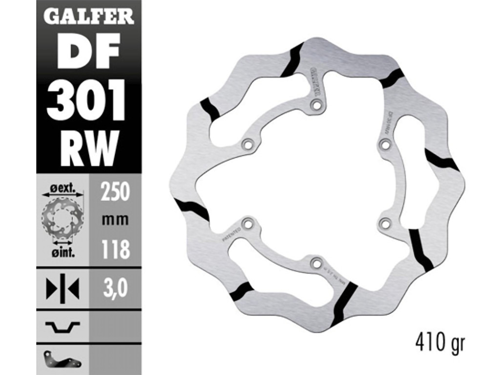 Il disco è della linea Race di Galfer, pensata per le competizioni. Ha un diametro standard e un profilo Wave, cioè ondulato. Questa forma aiuta a raffreddare il disco durante la frenata. Inoltre, fa uscire più velocemente fango, polvere e acqua, migliorando il grip. È costruito in acciaio inox ad alta resistenza, tagliato al laser. Questo garantisce precisione, leggerezza e lunga durata. La struttura è ventilata, per gestire meglio il calore e ridurre il rischio di perdita di potenza in frenata. Le finiture sono di alta qualità, come da tradizione Galfer.