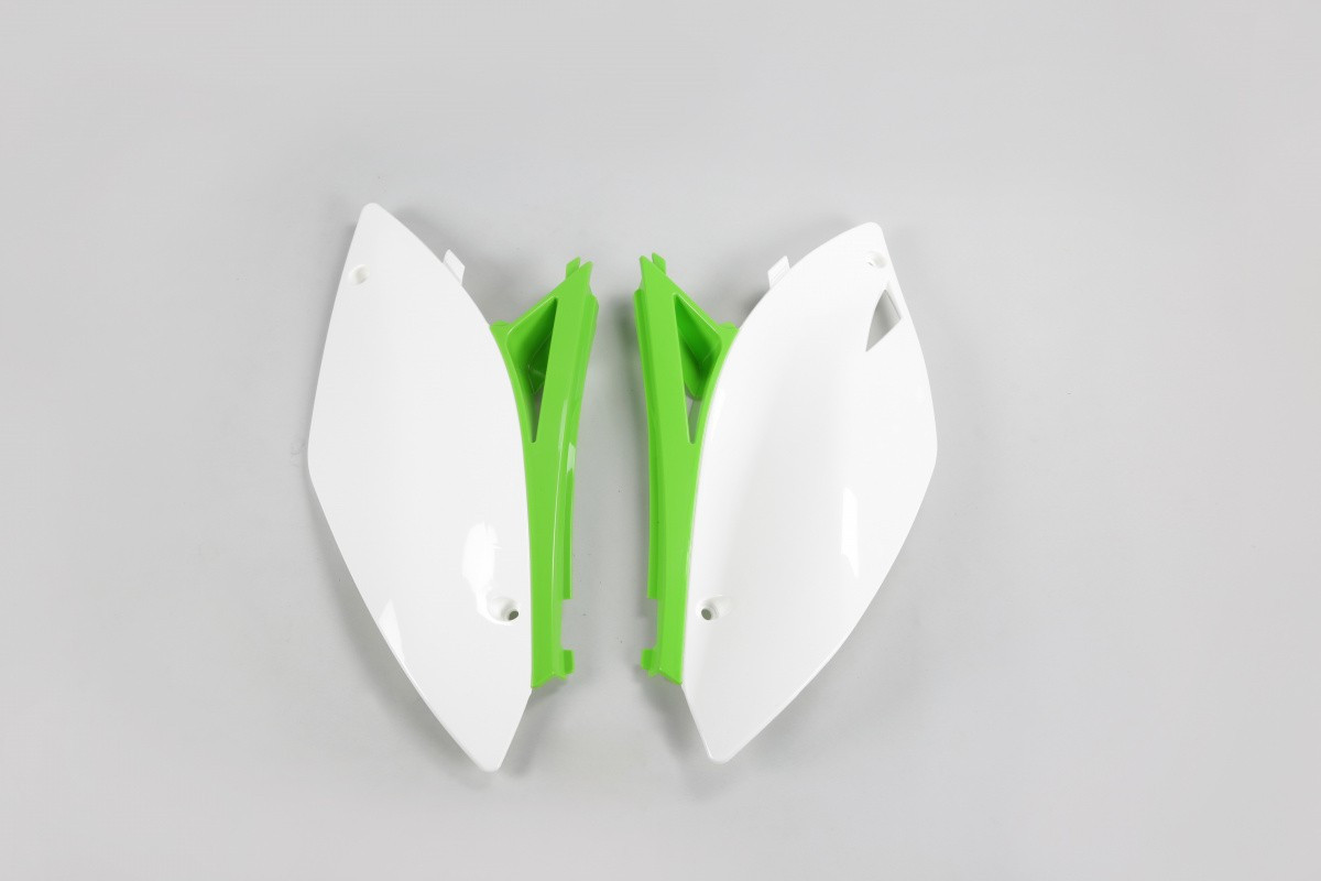 I fianchetti portanumero Ufo Plast bianchi e verdi sono realizzati con plastica resistente e di qualità. Si adattano perfettamente alla tua Kawasaki KX 450 F. Per la compatibilità anno moto far riferimento al titolo del prodotto. Questo significa che non dovrai fare modifiche o forzare i pezzi per montarli. Basta allinearli correttamente e fissarli con le viti originali. Ogni modello è pensato per aderire in modo sicuro e stabile, anche nelle condizioni più difficili.