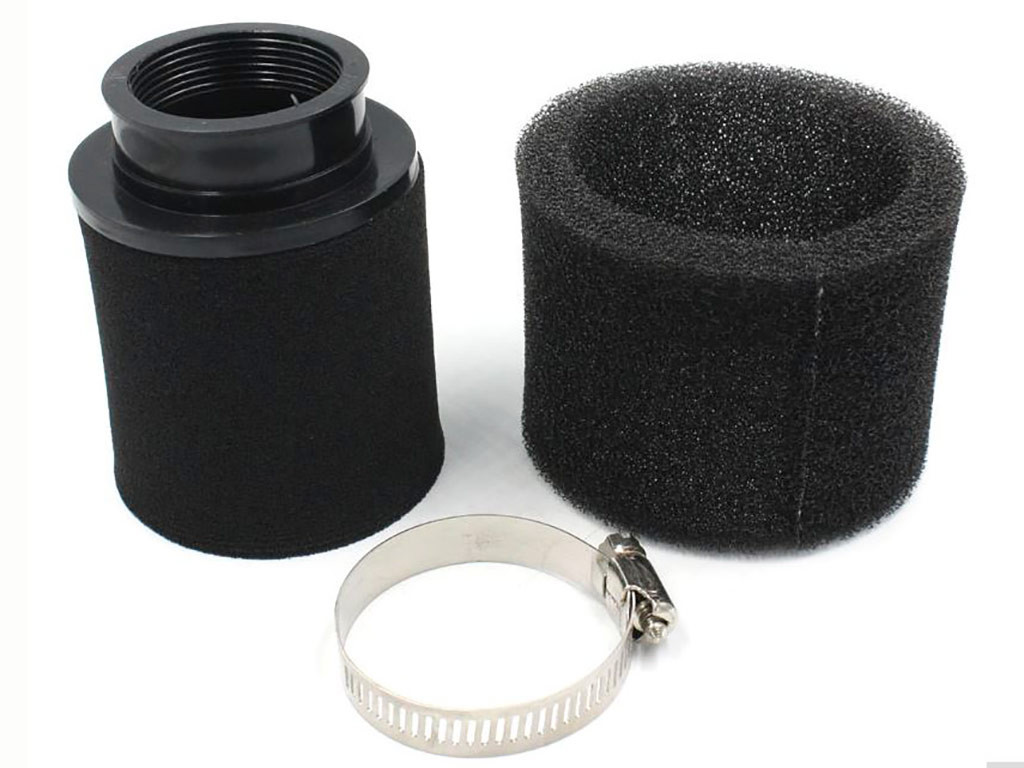 Filtro aria 42 mm, in doppia spugna. Viene fornito pronto per il montaggio con fascetta metallica.