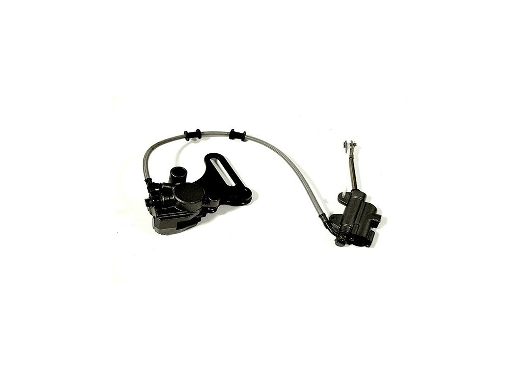 Impianto frenante posteriore completo. Interasse fissaggio fori attacco pinza 45 mm. Lunghezza asta 7,5 cm.