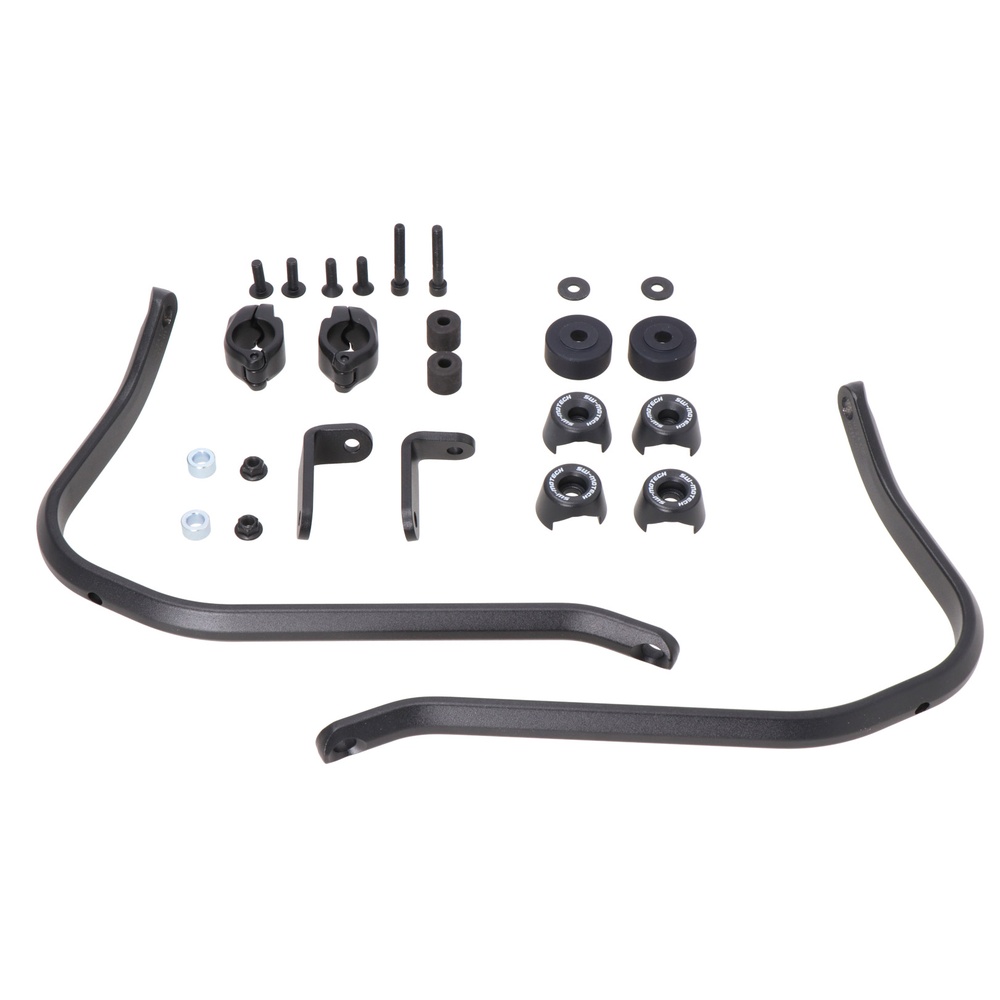 Questi kit di montaggio comprendono una robusta spina dorsale in alluminio e il materiale per il montaggio per fissare i paramani al manubrio della moto. Il dorsale protegge le leve e le mani del pilota in caso di incidenti e cadute. Possono essere combinati con i gusci per le mani ADVENTURE e SPORT, disponibili separatamente e realizzati in plastica polipropilenica resistente agli urti. Questi forniscono una protezione aggiuntiva contro le intemperie, la caduta di sassi e la guida in fuoristrada. Gli elementi di montaggio di alta qualità convincono per il loro design integrativo e la costruzione ottimizzata nei dettagli.