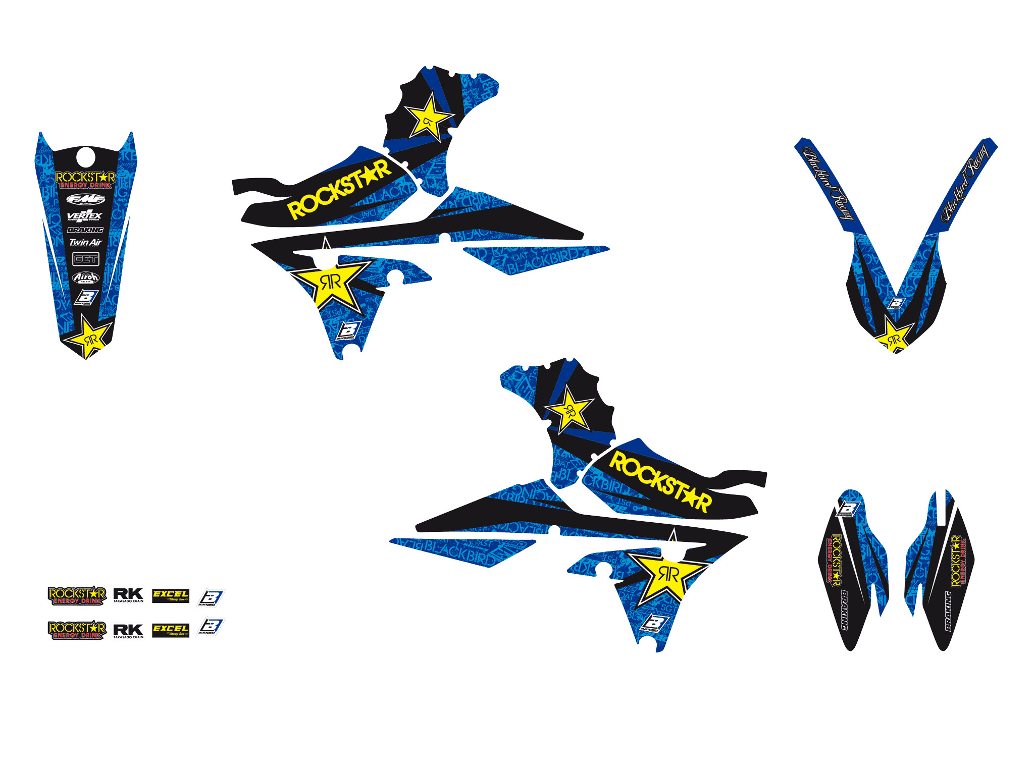 Kit adesivi completo Blackbird in crystall di alta qualità per Yamaha YZ 450 F (14-17) Rockstar Energy