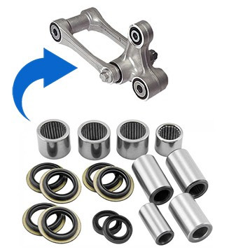 I kit sono composti da tutto il materiale necessario per una corretta revisione di un leverismo forcellone. Il kit è composto da gabbie a rulli, bussole, distanziali e parapolvere.