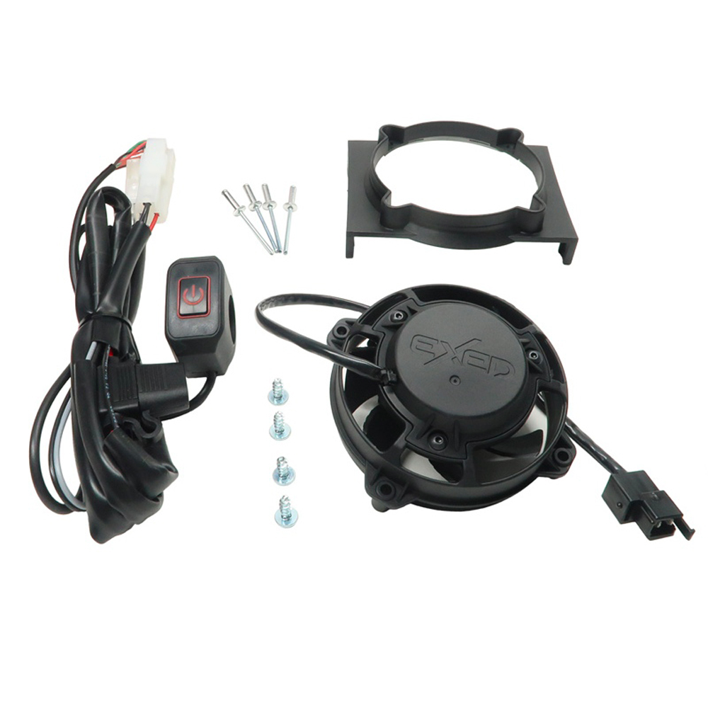 Ventola universale Exed per radiatore con attivazione manuale, compatibile con moto a 2 tempi e 4 tempi.