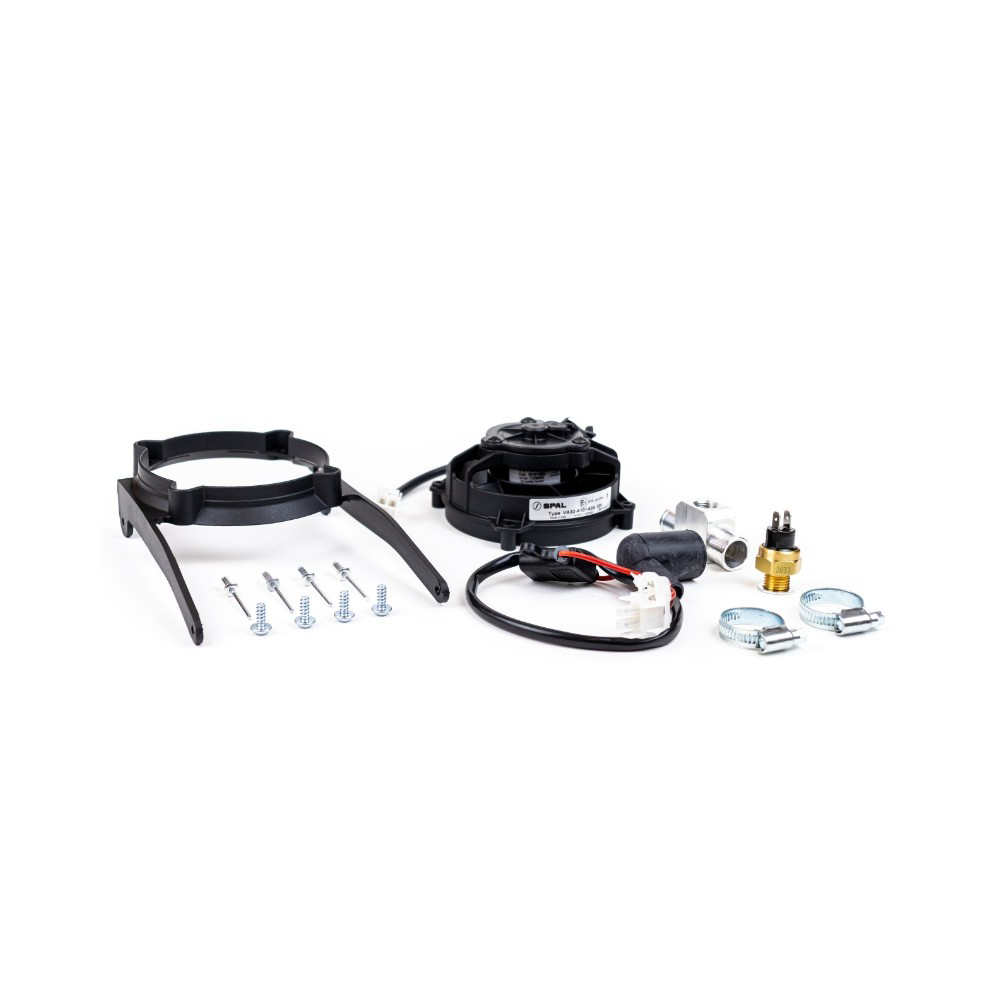 I kit ventola radiatore con ventola SPAL includono tutto il necessario per un'installazione rapida e semplice. Le ventole funzionano a 12V, garantendo una ventilazione ottimale anche nelle giornate più calde. Le ventole SPAL, prodotte in Italia, sono montate di serie, hanno dunque perfetta compatibilità, su modelli KTM, Husqvarna e Gasgas. Con un'intensità di corrente da 1,9 A, queste ventole garantiscono un flusso d'aria potenziato, offrendo un'efficace refrigerazione del radiatore. Il kit manuale consente di attivare la ventola attraverso un pulsante sul manubrio, quello automatico prevede invece l'avvio autonomo.