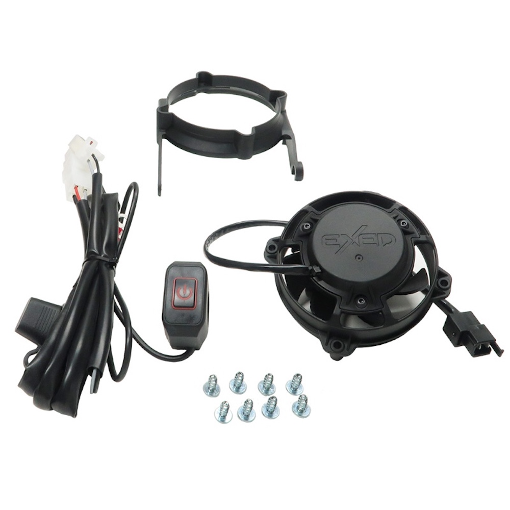 Ventola universale Exed per radiatore con attivazione manuale, compatibile con moto a 2 tempi e 4 tempi.