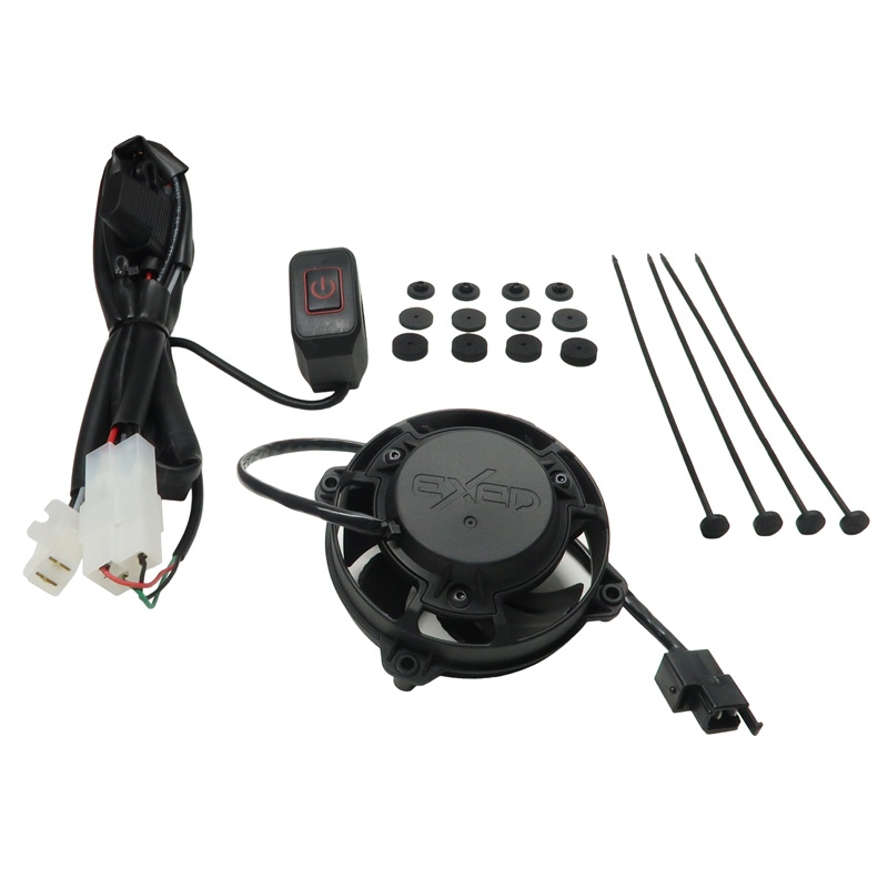 Ventola universale Exed per radiatore con attivazione manuale, compatibile con moto a 2 tempi e 4 tempi.