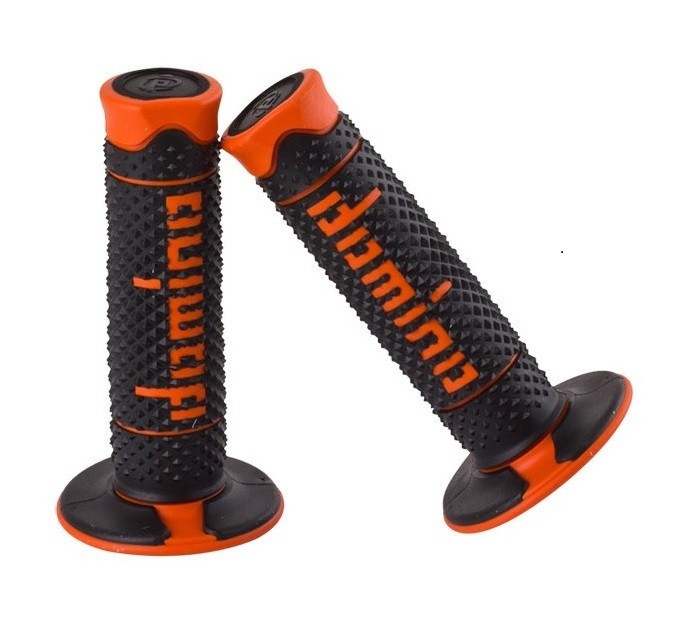 Manopole Domino bicolore per enduro. Con finitura multipiramidale. Colorazione Nera Arancione