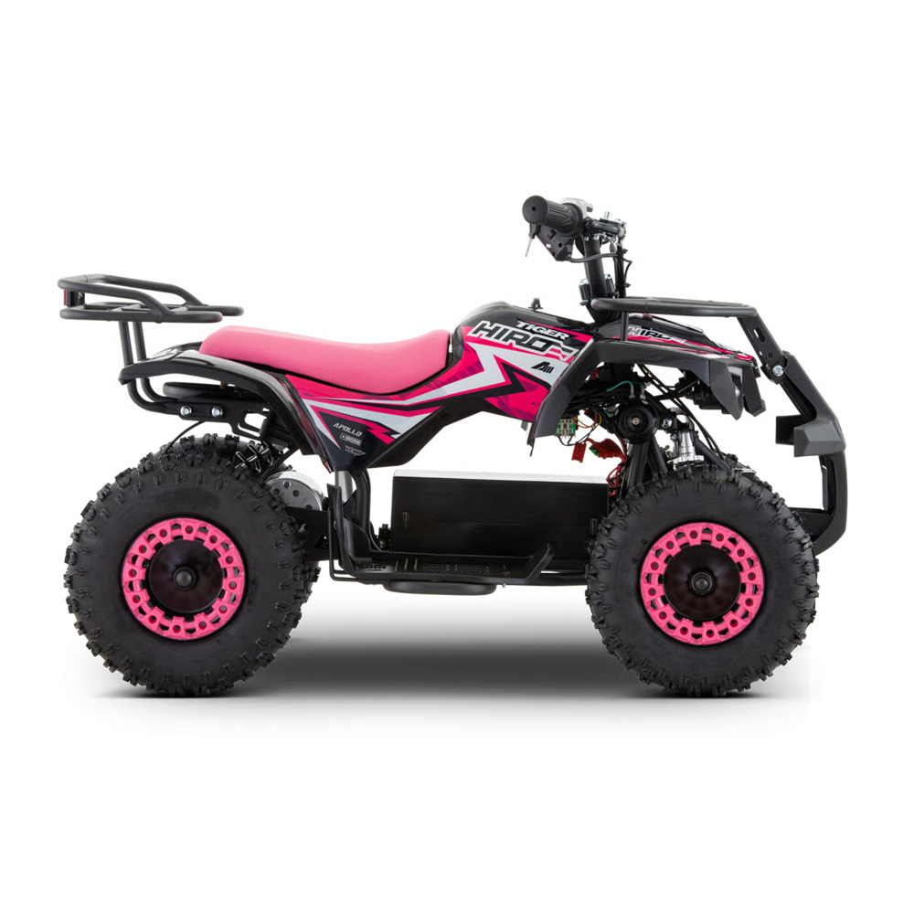 Il Miniquad Hiro Tiger 800W Rosa è un veicolo elettrico studiato per bambini dai 3 agli 8 anni. Realizzato dal marchio francese Apollo, attivo dal 2005 nello sviluppo di quad e moto per tutte le età, questo modello si distingue per l’equilibrio tra prestazioni e sicurezza. Il motore da 800 Watt offre una guida fluida e silenziosa, ideale per un uso ricreativo su spazi privati. La trasmissione è automatica con retromarcia, semplificando l'utilizzo anche ai più piccoli.