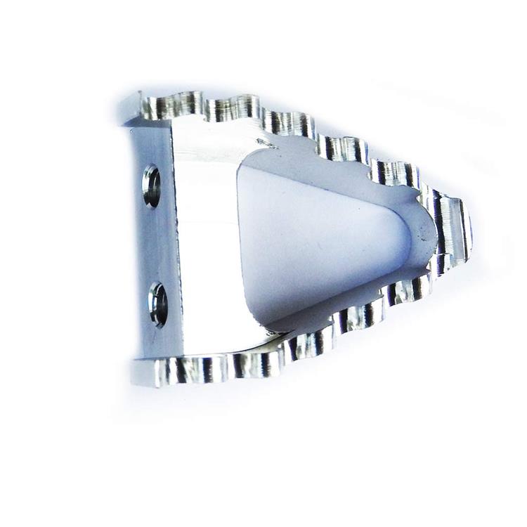 Puntale pedale per freno posteriore CNC colore argento. Dotato di due fori M6 per fissaggio.