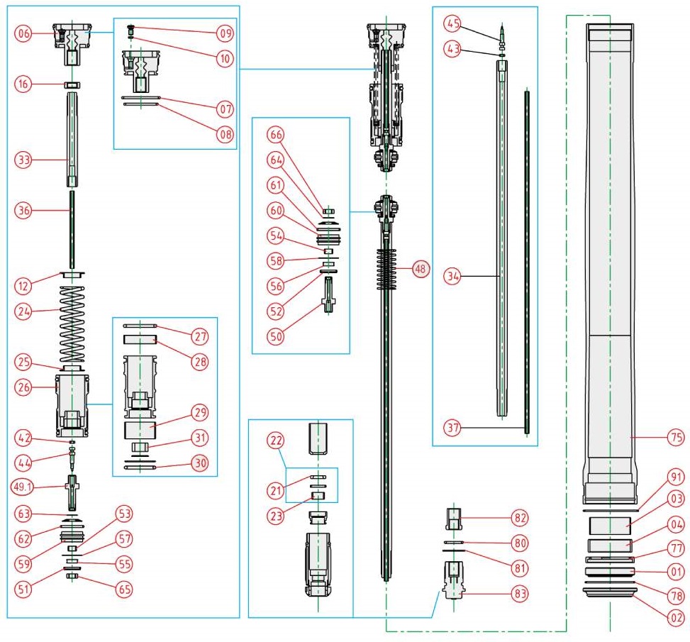 Ricambi forcella Kawasaki KX 125 (2004-2008) - Cilindro cartuccia [22]