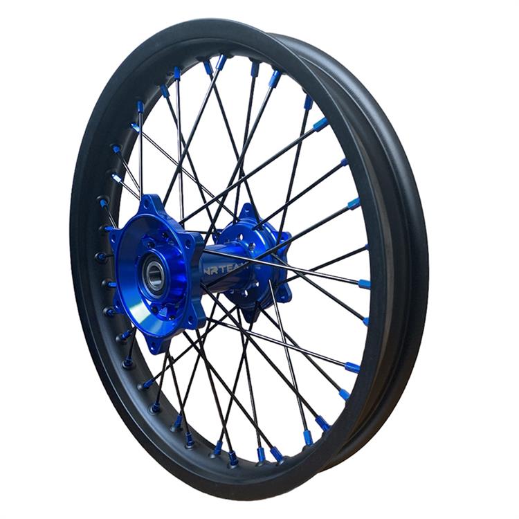 Il cerchio è in alluminio anodizzato, leggero e resistente. Il colore brillante aggiunge un tocco sportivo ed elegante alla moto. I raggi rinforzati garantiscono un'elevata resistenza, anche in caso di forti sollecitazioni o salti. Il mozzo è lavorato CNC, ovvero ricavato da un blocco solido di alluminio con macchinari di alta precisione. Questo assicura durata, stabilità e perfetto allineamento. La ruota è già assemblata con cuscinetti e distanziali, pronta al montaggio. Il bilanciamento è ottimale e la struttura è pensata per durare nel tempo, anche in condizioni difficili.