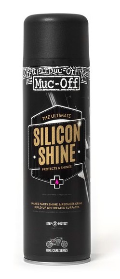 Muc-Off Silicon Shine è uno spray al silicone pensato per prendersi cura delle superfici della moto. Lucida e protegge metallo, plastica e gomma, ridando brillantezza e colore a tutte le parti trattate. È ideale per carene, parafanghi, telai, forcelle, tubi e coperture in gomma.