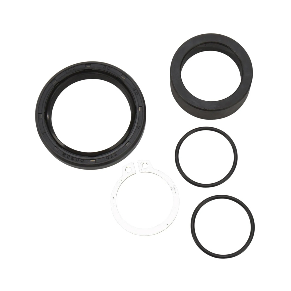 Il kit di revisione dell'albero secondario comprende tutto il necessario per una rapida ed economica sostituzione del materiale usurato, quindi paraolio, bussola in acciaio, l'eventuale rondella di bloccaggio ed o-ring posti a tenuta dell'olio sull'albero del cambio, sotto il pignone.
