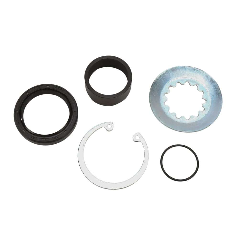 Il kit di revisione dell'albero secondario comprende tutto il necessario per una rapida ed economica sostituzione del materiale usurato, quindi paraolio, bussola in acciaio, l'eventuale rondella di bloccaggio ed o-ring posti a tenuta dell'olio sull'albero del cambio, sotto il pignone.